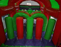 This two-lane marvel is the ultimate thrill ride, inviting brave souls to embark on a journey through inflatable pillars, tunnels, and a heart-pounding 10ft high climbing wall. Once at the top, riders will experience the exhilaration of zooming down the steep slide, making this obstacle course a surefire hit with older children!