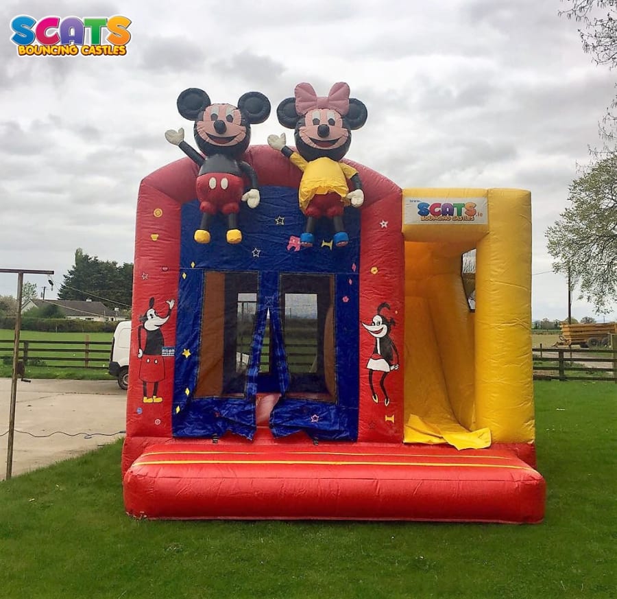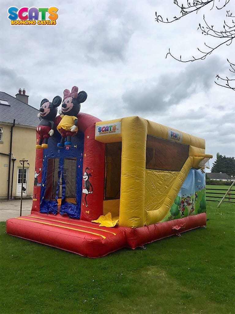 Book with Scats today and make sure your party will be a day to remember! We are number one in Ireland and we guarantee a fun filled and stress free entertainment! Our top quality combi units are very popular with children of all ages. We have a very large selection and you definitely will find something for your party. Our Mickey and Minnie combi is very popular with Dinsey followers! You can't go wrong with the Disney themed Combi Unit with Mickey & Minnie looking down on you. This unit is red, yellow and purple and also features pictures of Minnie and Mickey on the sides of the entrance to the bouncy area! Both the bouncing area and slide to the side are fully enclosed which means even those frequent Irish rain showers don't spoil the fun in this Bouncy Combi Unit.