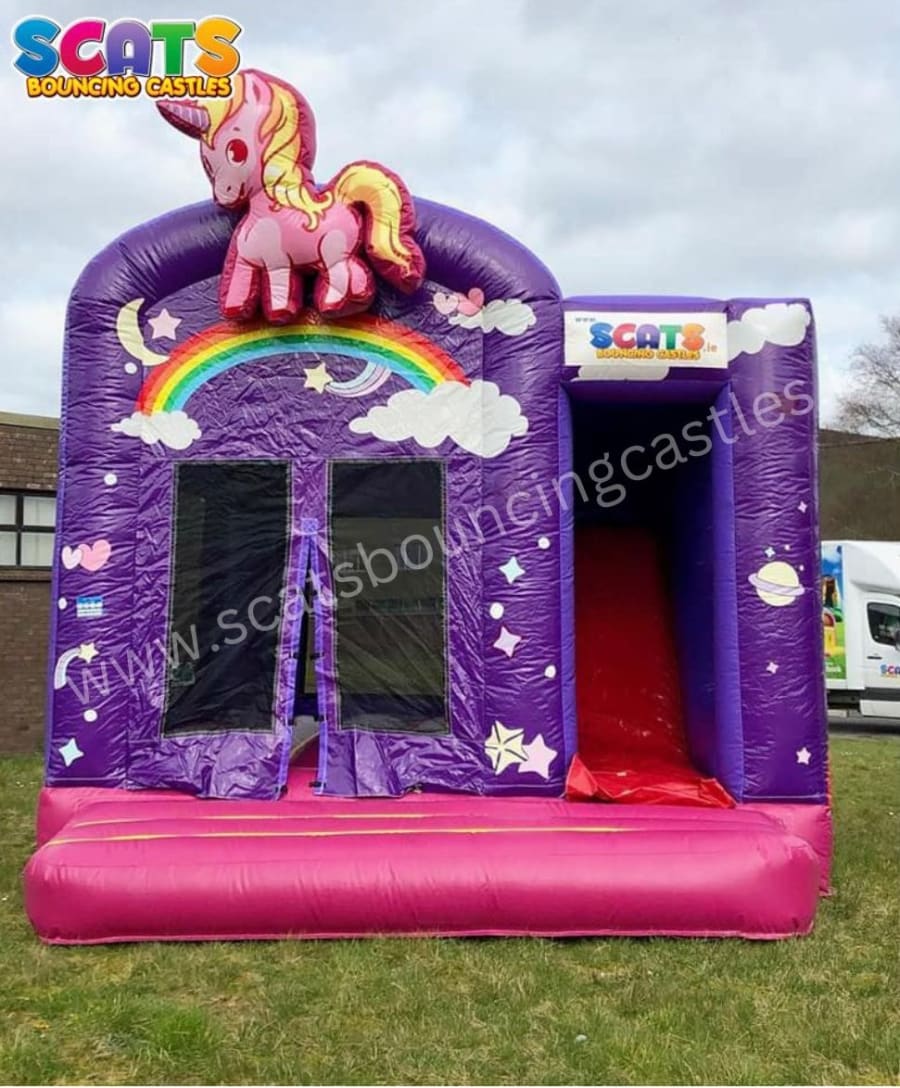 Introducing our enchanting Unicorn-themed combi unit, fresh to Scats Bouncing Castles! This magical unit features a spacious bouncy castle area and a slide to the side, adorned with captivating digital prints of a majestic Unicorn at the forefront. Suitable for children aged 2 and up, it boasts supervised netting all around, ensuring a safe and secure play environment. Plus, with its full coverage, there's no need to fret about the weather dampening the festivities!