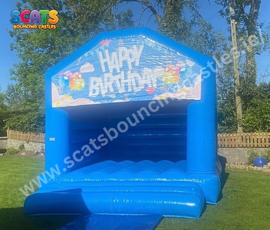 Introducing our beautiful Blue Banner Bouncy Castle: the partially enclosed Bouncing Castle, specially crafted for children's parties with ease of supervision in mind. Its captivating artwork promises endless bouncing excitement, sure to delight every young guest at your event. This castle is guaranteed to be the highlight of your party, so why wait? Secure it for your event today and treat everyone to hours of worry-free bouncing bliss.