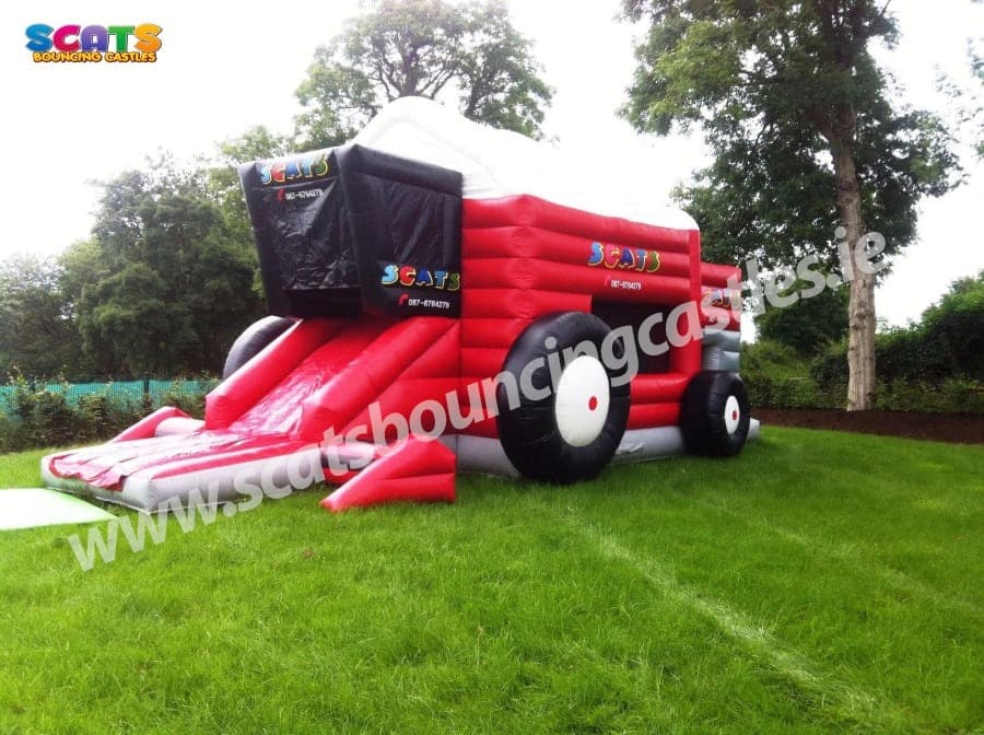Explore our exciting Red Combine Harvester Combi Unit! This fantastic unit boasts a spacious bouncing area, and complete with a slide. Resembling a real combine harvester, it's predominantly red and sure to captivate your guests!