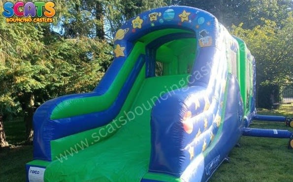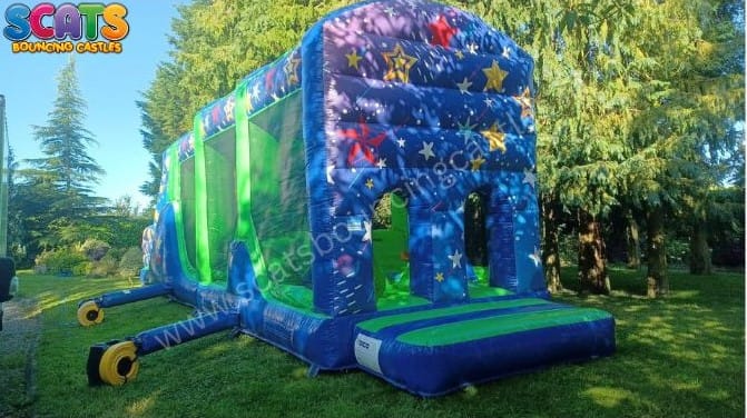 From the moment you step through the arch entrance, you'll be greeted by a world of excitement and adventure. Navigate through jump-through areas, conquer tunnels, and navigate pop-up tubes before reaching the thrilling slide finale!