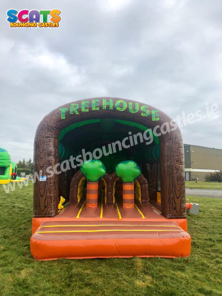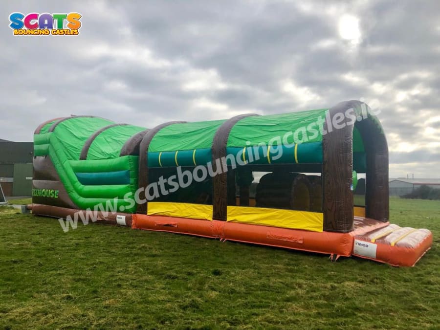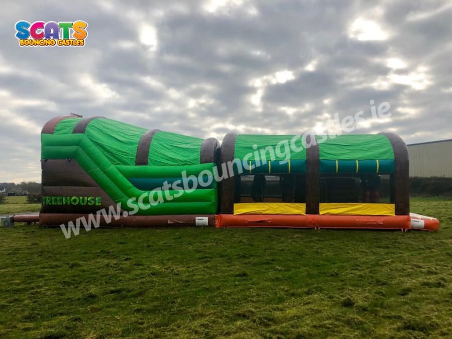 Discover the latest addition to the Scats Bouncing Castles lineup: the awe-inspiring Giant Enclosed Treehouse Obstacle Course! Prepare to be enchanted as you step into a world of wonder and excitement, nestled within the safety and comfort of its fully covered design – a perfect sanctuary from the unpredictable Irish weather.