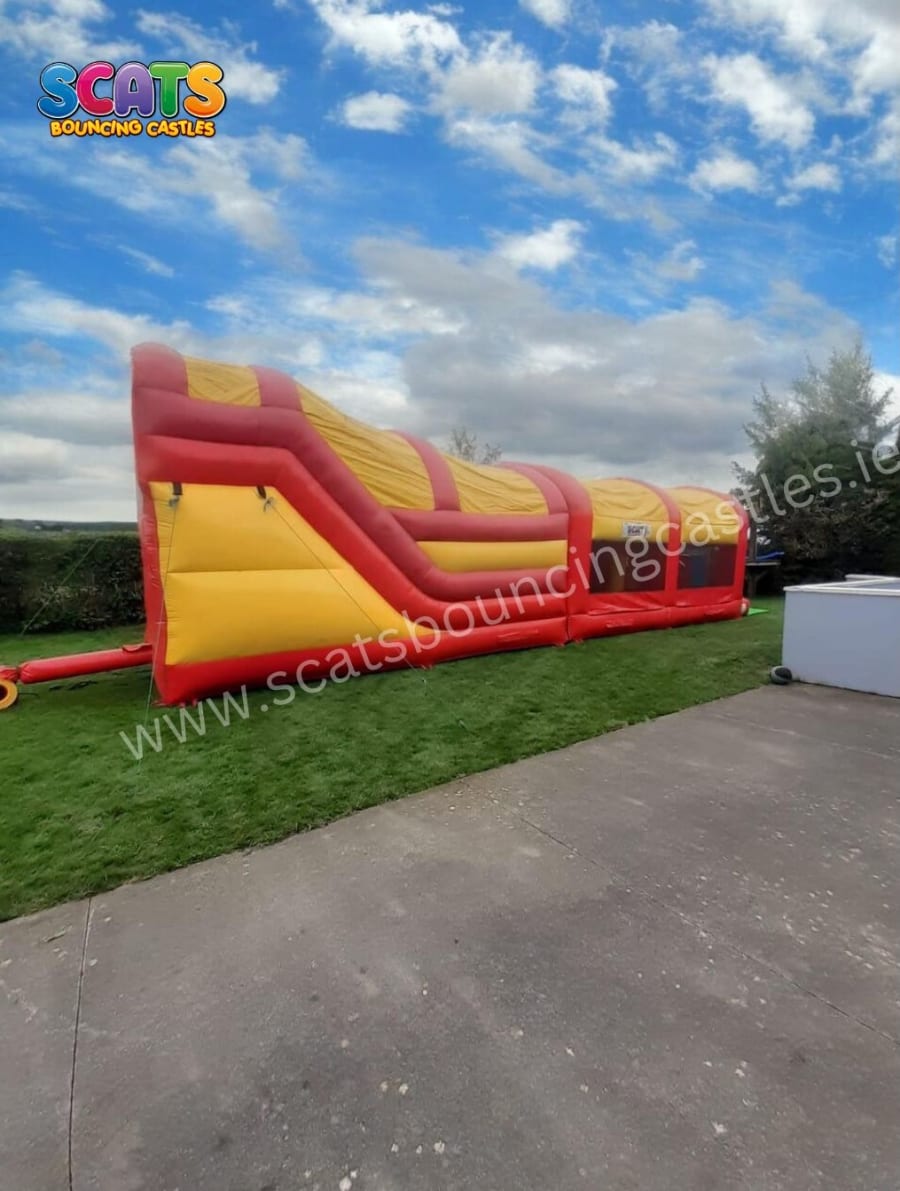 Fully covered to withstand any twist of Irish weather, this obstacle course is the ultimate playground for every youngster's imagination. With an 8ft high slide, climbing ladder, and a maze of obstacles to conquer, the adventure never ends! It's the perfect blend of excitement and safety, suitable for both boys and girls, ensuring every child has a blast.