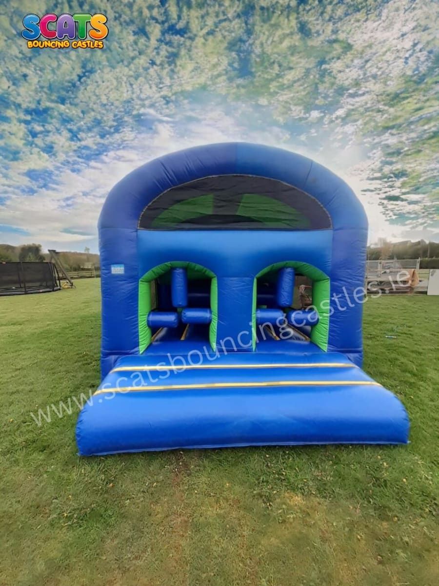 Embark on a thrilling journey through this two-lane obstacle course, where you'll navigate through inflatable pillars, conquer a challenging climbing wall, and weave through tunnels before reaching the pinnacle: a towering 10ft high climbing wall. Once you've conquered the climb, brace yourself for an adrenaline-pumping descent down the steep slide!