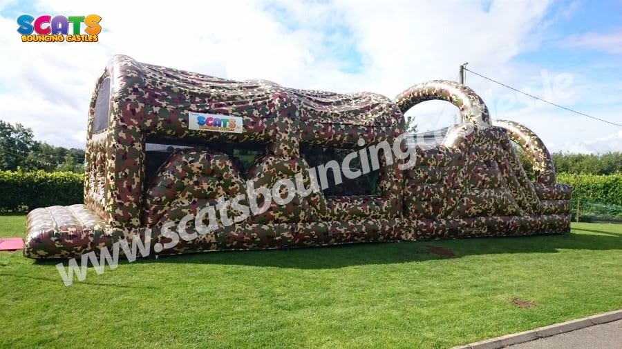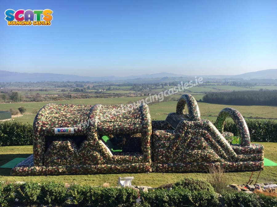 Our obstacle courses come in all shapes and sizes! Kids love challenges, and our inflatable obstacle courses will definitely be able to satisfy their needs! Check out our Boot Camp Obstacle Course! This Brand New Boot Camp Obstacle Course is a two lane climbing obstacle whereby you enter the unit at the back through a series of inflatable pillars over the climbing wall, through the tunnels and then faced with a 10ft high climbing wall up to the top and then slide down the slide. Fully camouflaged, this is hugely popular with older children. So get your game on, it won't disappoint. This obstacle course is perfect for birthday parties, communions, confirmations, sports days and much more!