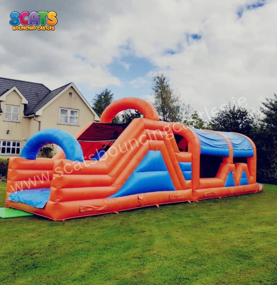 At Scats Bouncing Castles, we're dedicated to providing top-tier fun with a commitment to safety and professionalism. Whether you're planning a grand event or a cozy gathering, our Orange & Blue Obstacle Course is sure to be the highlight of the day.