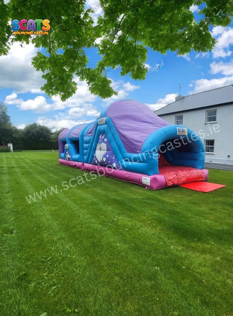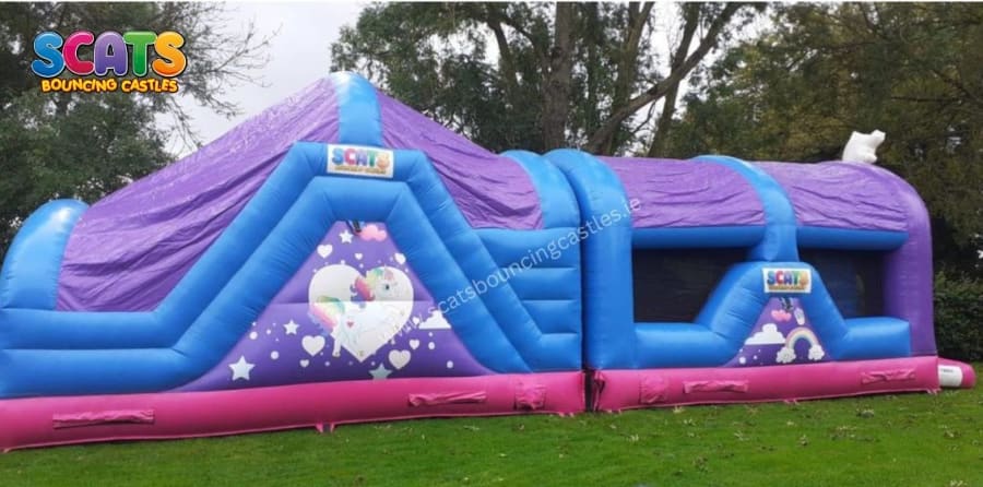 Step into the enchanting world of our brand new Unicorn Obstacle Course, where magic and adventure collide in a whirlwind of excitement! Picture this: tunnels adorned with rainbow hues, bouncy areas where dreams take flight, a rock climbing wall that tests bravery, a bish bash zone filled with surprises, and a slide that leads to victory! This whimsical wonderland is partially enclosed and covered with safety netting on each side, ensuring ease of supervision while your little unicorns frolic and play.