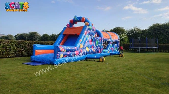 Embark on a journey with this gorgeous Party themed Obstacle Course, complete with bish bash,an up and over and a 9ft slide!!! Beautifully decorated with balloons and vibrant colours this is certainly a showstopper!