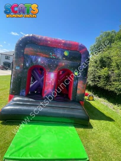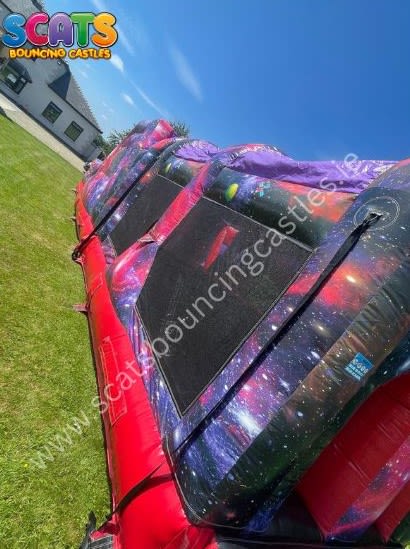 Embark on a journey with this gorgeous Galaxy themed Obstacle Course, complete with bish bash,an up and over and a 9ft slide!!! Beautifully decorated with balloons and vibrant colours this is certainly a showstopper anfd OUT OF THIS WORLD!