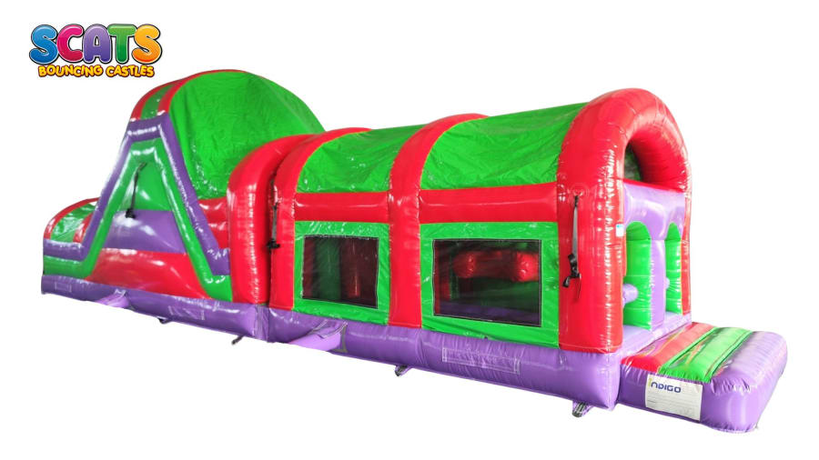 This two-lane marvel is the ultimate thrill ride, inviting brave souls to embark on a journey through inflatable pillars, tunnels, and a heart-pounding 10ft high climbing wall. Once at the top, riders will experience the exhilaration of zooming down the steep slide, making this obstacle course a surefire hit with older children!